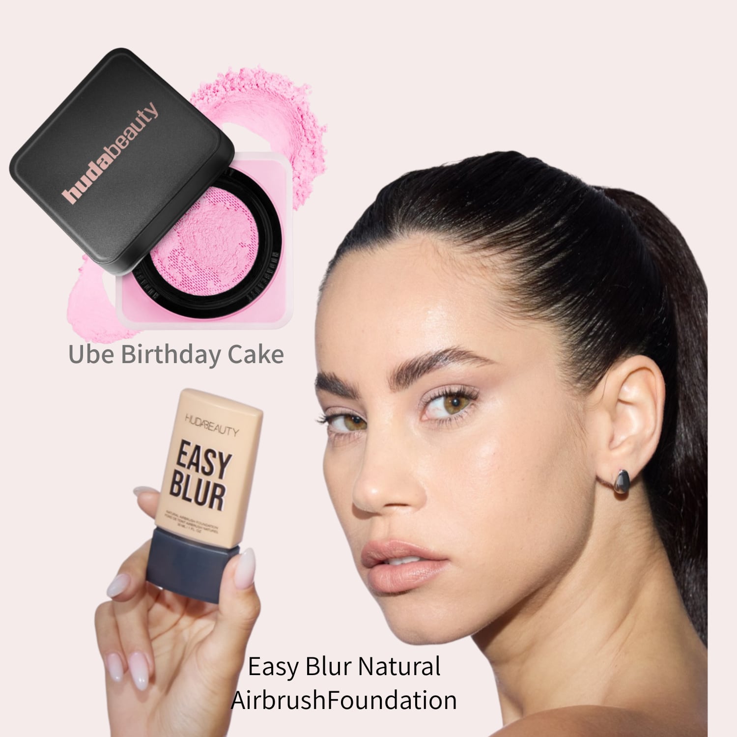 【HUDA BEAUTY】Ube Birthday Cake (Easy Bake Loose Baking & Setting Powder) & お好きなカラー (Easy Blur Natural Airbrush Foundation with Niacinamide)